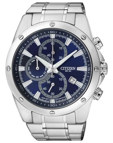 barva řemínku/tahu stříbrná, barva ciferníku modrá, sklo minerální, pouzdro ocel, ukazatel data datumovka, řemínek ocel, styl módní, typ strojku Quartz - baterie, typ analogové, tvar pouzdra kulaté, vodotěsnost 100 m, stopky s přesností 1/1 vteřiny, max.