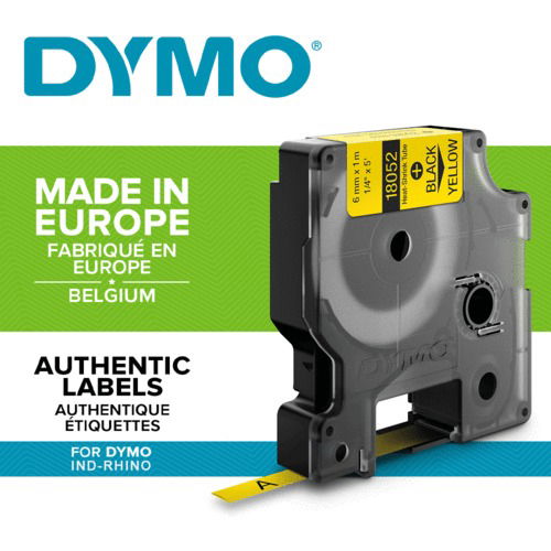 Tonery Náplně Kompatibilní páska s Dymo 18052, S0718270, 6mm x 1,5m , černý tisk / žlutý podklad, RHINO - Trubice