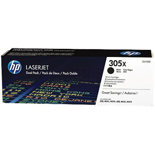 Balenie2ks Čierna tonerová kazeta HP 305X LaserJet CE410XUrčené pre tlačiarne - HP LaserJet Pro300 M351anw, Pro400 M451dndwnw, M475dndwVýťažnosť čiernej tlačovej kazety je 2x4000str.